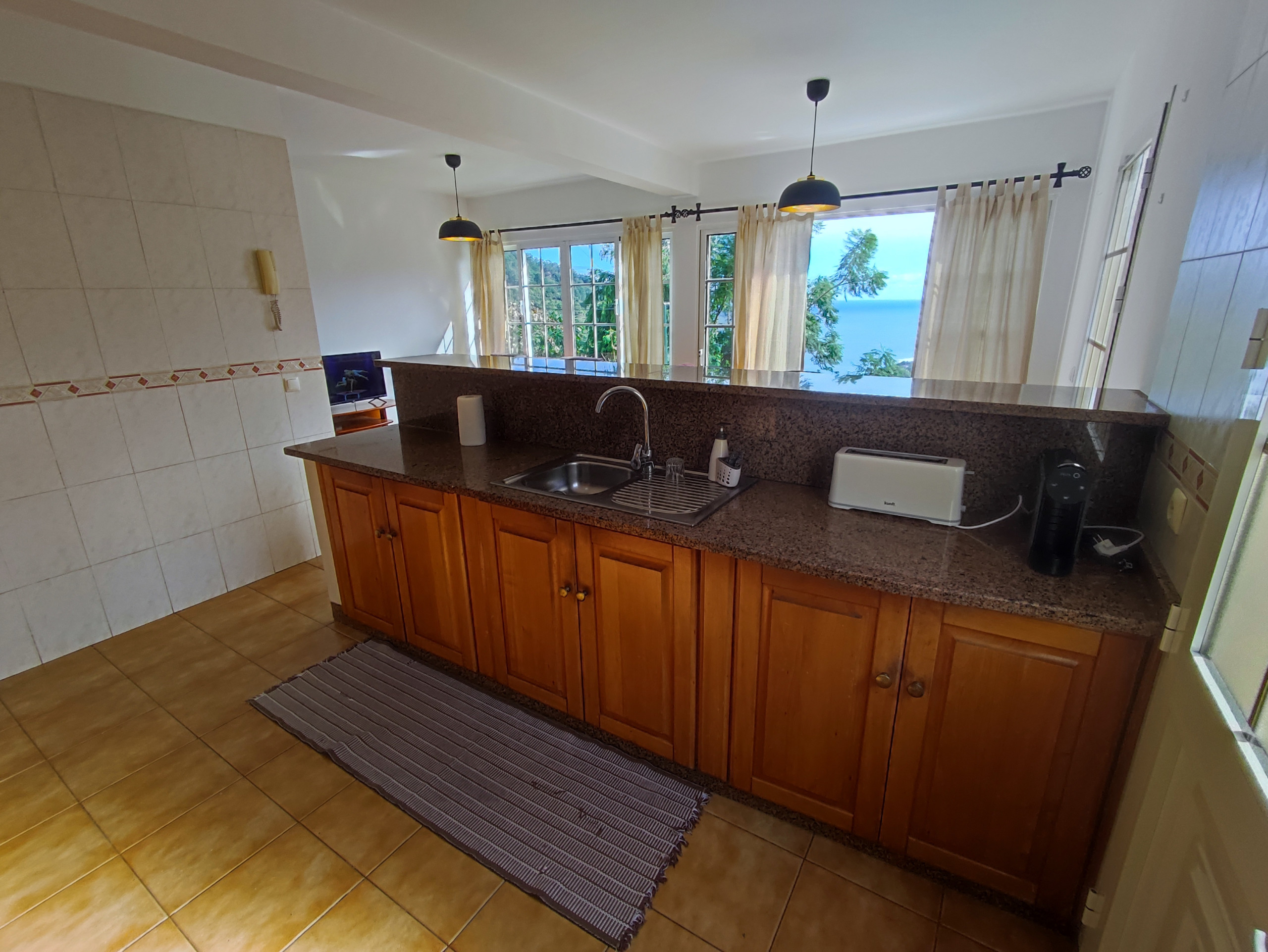Maison à Porto da Cruz qui possède 2 chambre(s) et Capacité pour 4 personnes. Logement de 60 m² accueillant et très lumineux, avec vue sur la mer et la montagne. La location se trouve à 0 m des pistes de ski, 50 m de la gare routière "Paragem Autocarro", 100 m du restaurant "Adega da Cruz", 100 m de la cafétéria "Adega da Cruz", 100 m de la cafétéria "Katrepa's bar", 100 m du parc "Vereda da Penha d'Águia", 2 km du supermarché "Mini-Mercado", 2 km de la ville "Porto da Cruz", 2 km de la cafétéria "Pasteleria da Terezinha", 2 km de la plage de roche "Praia da Alagoa, Porto da Cruz", 4 km du restaurant "Casa de Chá", 5 km du parc naturel "Parque Natural Ribeiro Frio", 10 km du lac "Lagoa da Portela", 12 km du domaine de Golf "Clube de Golf Santo da Serra", 12 km du parc "Caldeirão Verde PR9", 14 km de la gare routière "Terminal Rodoviário Machico", 16 km de l'aéroport "Aeroporto Internacional da Madeira", 16 km de l'aéroport "Aeroporto Internacional da Madeira", 17 km du parc aquatique "Aquaparque Madeira, Santa Cruz", 17 km du supermarché "Continente Machico", 25 km de l'hôpital "Hospital Dr. Nélio Mendonça", 27 km du parc aquatique "Complexo Balnear do Lido, Funchal", 91 km du parc naturel "Parque Natural da Madeira" et il est situé dans une zone idéale pour familles zone et rural. Elle dispose de jardin, mobilier de jardin, 20 m² de terrasse, lave-linge, accès internet (wifi), parking extérieur bâtiment proche, 1 Télévision, tv satellite (Langues: Anglais). La cuisine américaine, à induction, est équipée avec réfrigérateur, micro-ondes, four, congélateur, vaisselle/couverts, ustensiles/cuisine, cafetière, grille pain et bouilloire.